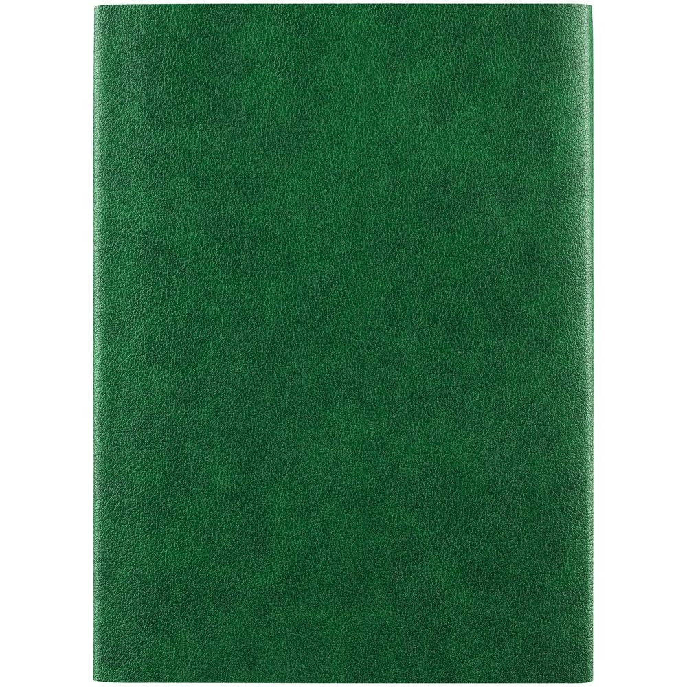 Ежедневник с гибкой обложкой, клапаном на магните и металлической отделкой клапана. Выполнен из материала Petrus, зеленый FF, дополнен серым ляссе.