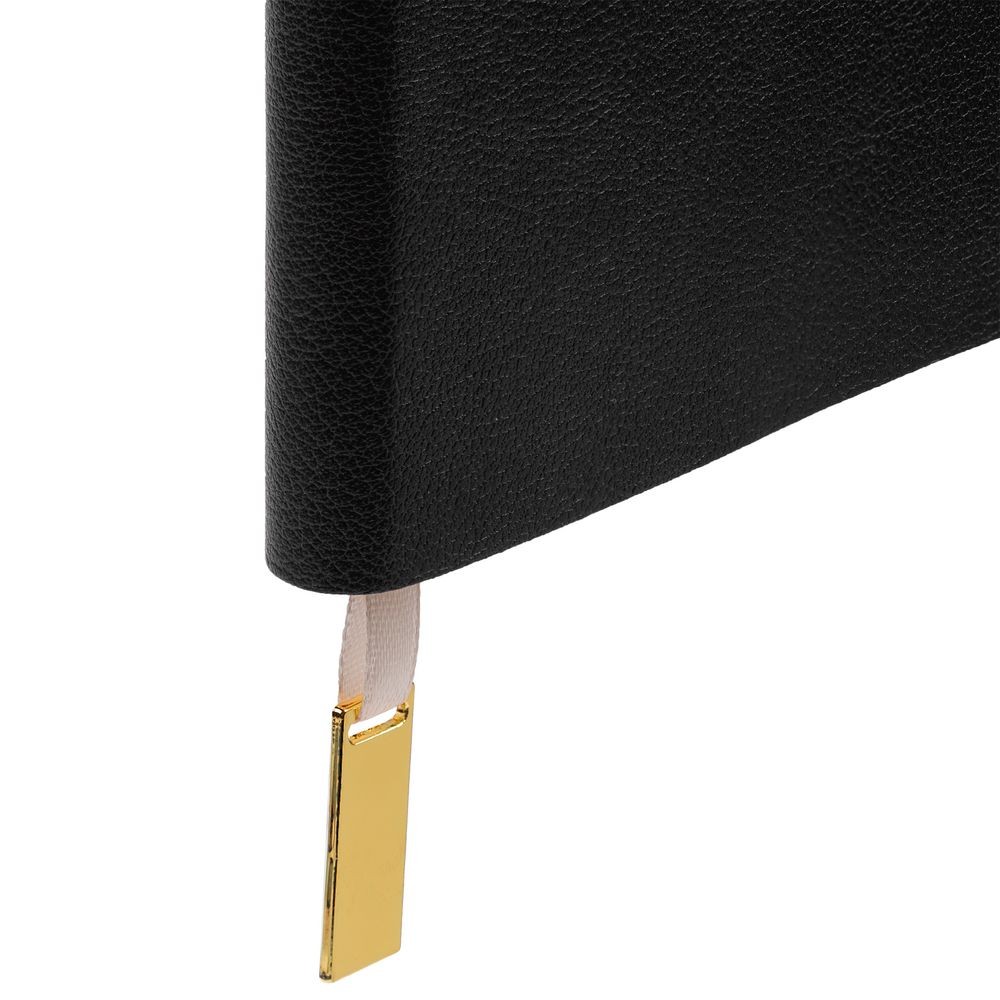 Ежедневник с гибкой обложкой, выполнен из материала Petrus, черный АА, дополнен серым ляссе с металлическим золотистым шильдиком.