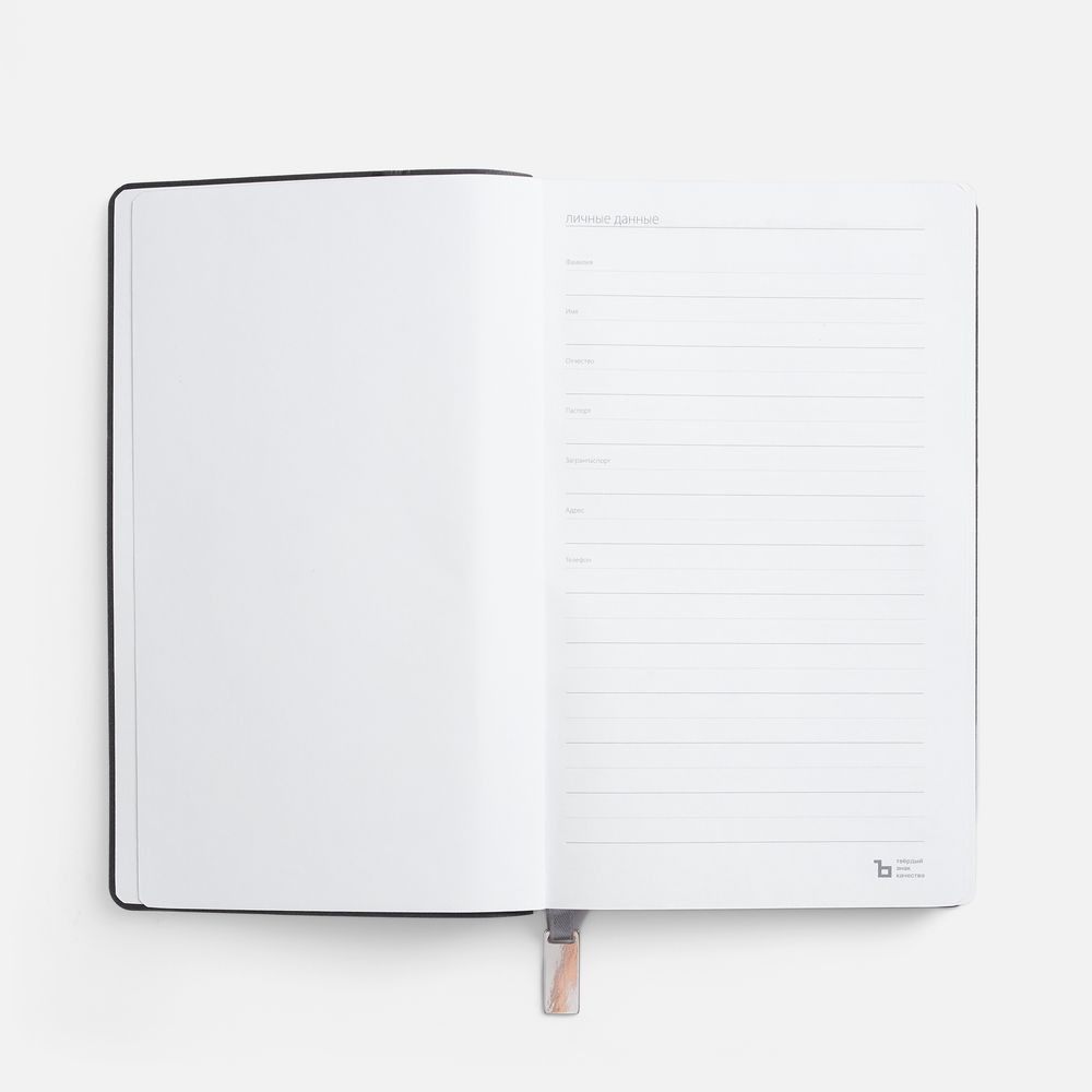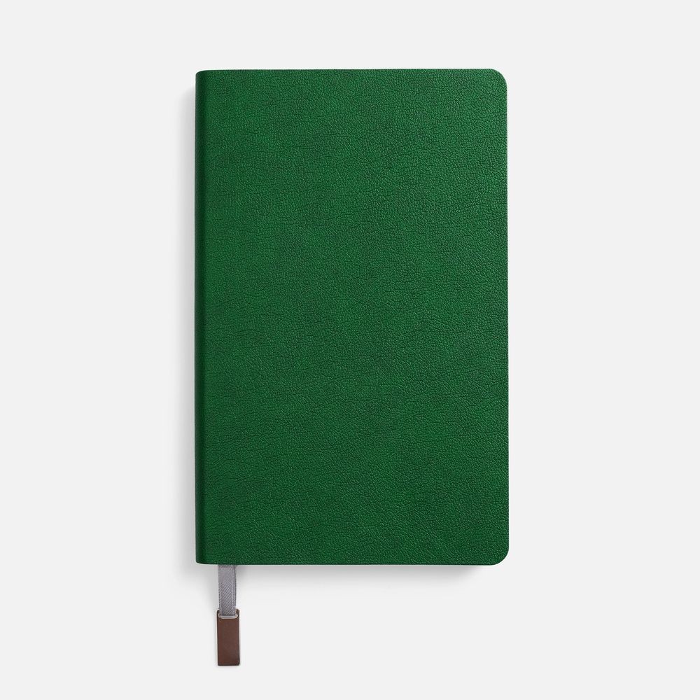 Ежедневник с гибкой обложкой, выполнен из материала Petrus, зеленый FF, дополнен серым ляссе с металлическим шильдиком.