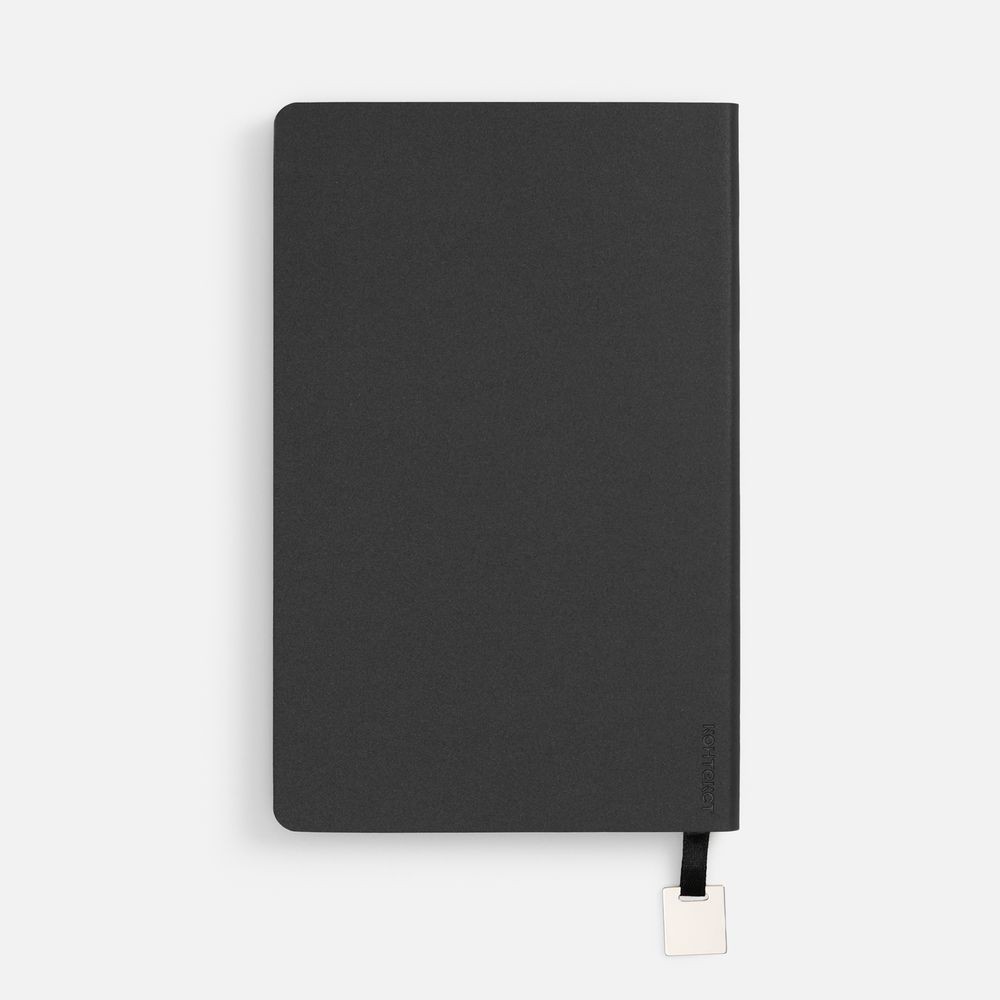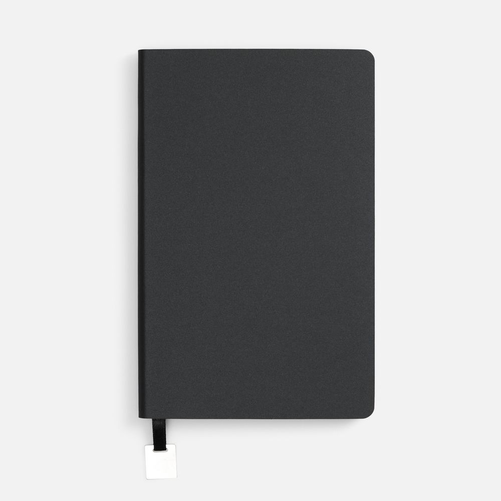 Ежедневник с гибкой обложкой, выполнен из материалов Soft Touch Pearl, черный АА, и Latte, черный (внутренняя часть обложки), дополнен ляссе в цвет обложки с металлическим шильдиком.