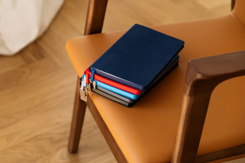 Ежедневник с гибкой обложкой, выполнен из материалов Soft Touch Ultra, красный РР, и Latte, красный (внутренняя часть обложки), дополнен ляссе в цвет обложки с металлическим шильдиком.