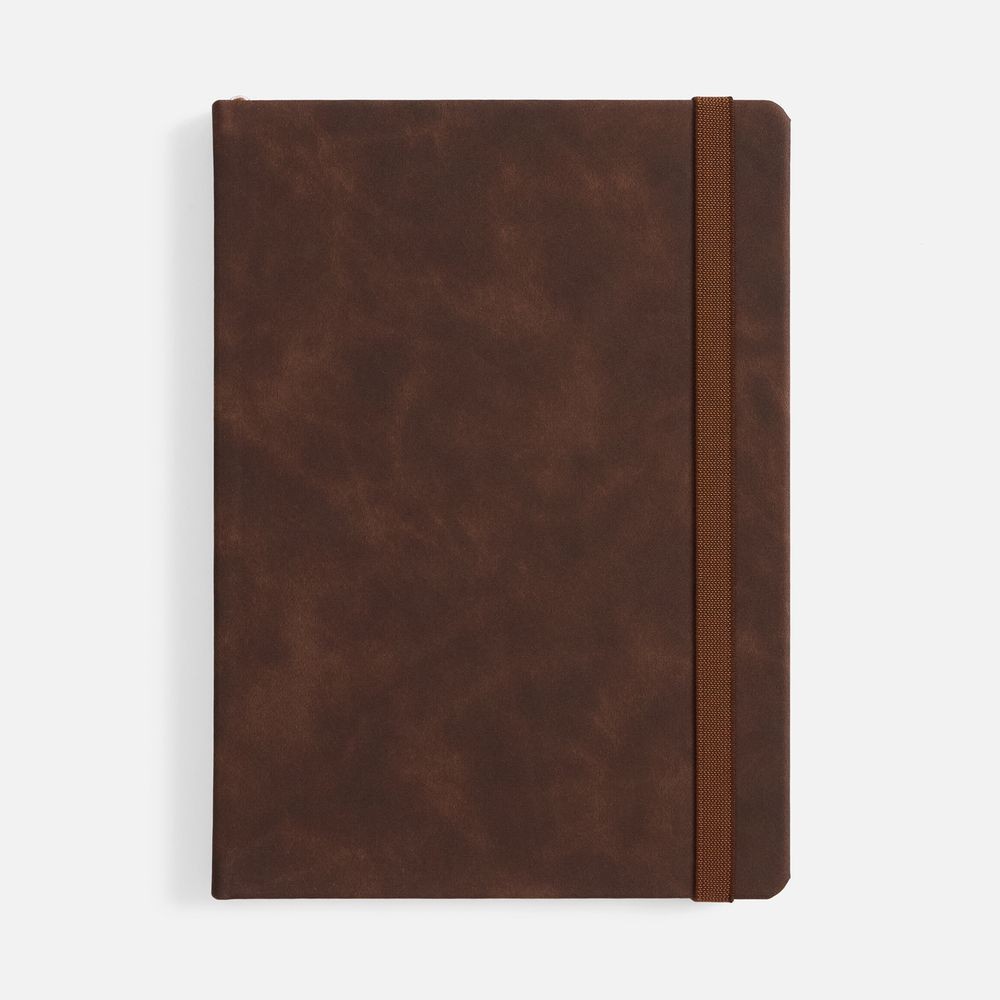 Ежедневник с твердой обложкой, выполнен из материала Nubuck Touch, темно-коричневый ZZ, дополнен ляссе темно-коричневого цвета.