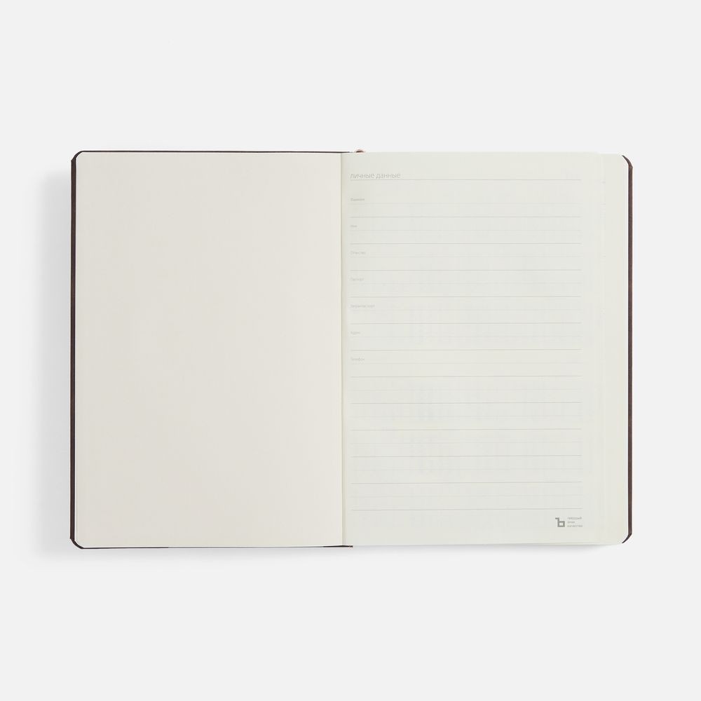 Расчет нанесенияЕжедневник с твердой обложкой, выполнен из материала Nubuck Touch, темно-коричневый ZZ, дополнен ляссе темно-коричневого цвета.