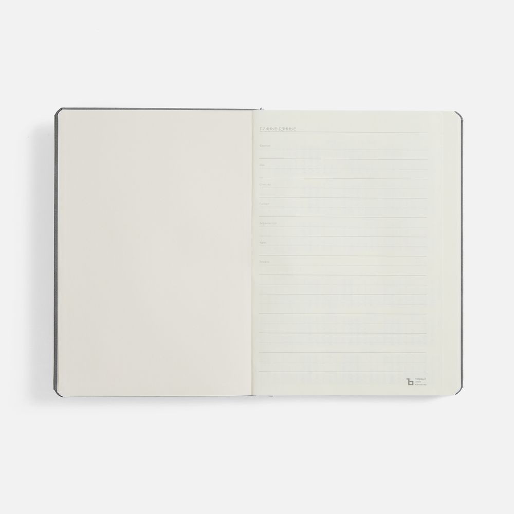 Расчет нанесенияЕжедневник с твердой обложкой, выполнен из материала Nubuck Touch, серый СС, дополнен ляссе темно-серого цвета.