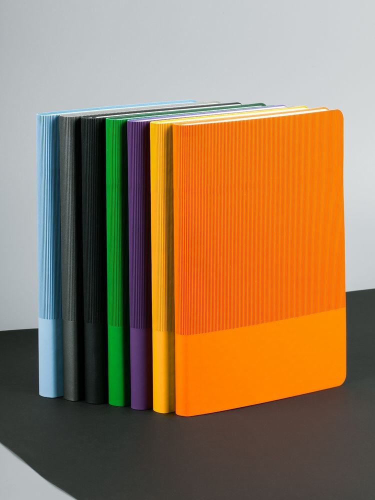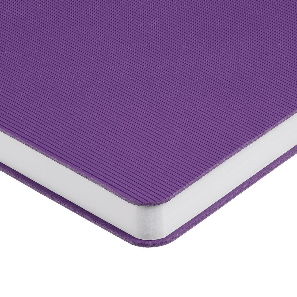 Ежедневник с гибкой обложкой выполнен из материала Soft Touch, фиолетовый UU и Latte, фиолетовый (внутренний материал); дополнен ляссе фиолетового цвета и фактурным тиснением обложки.