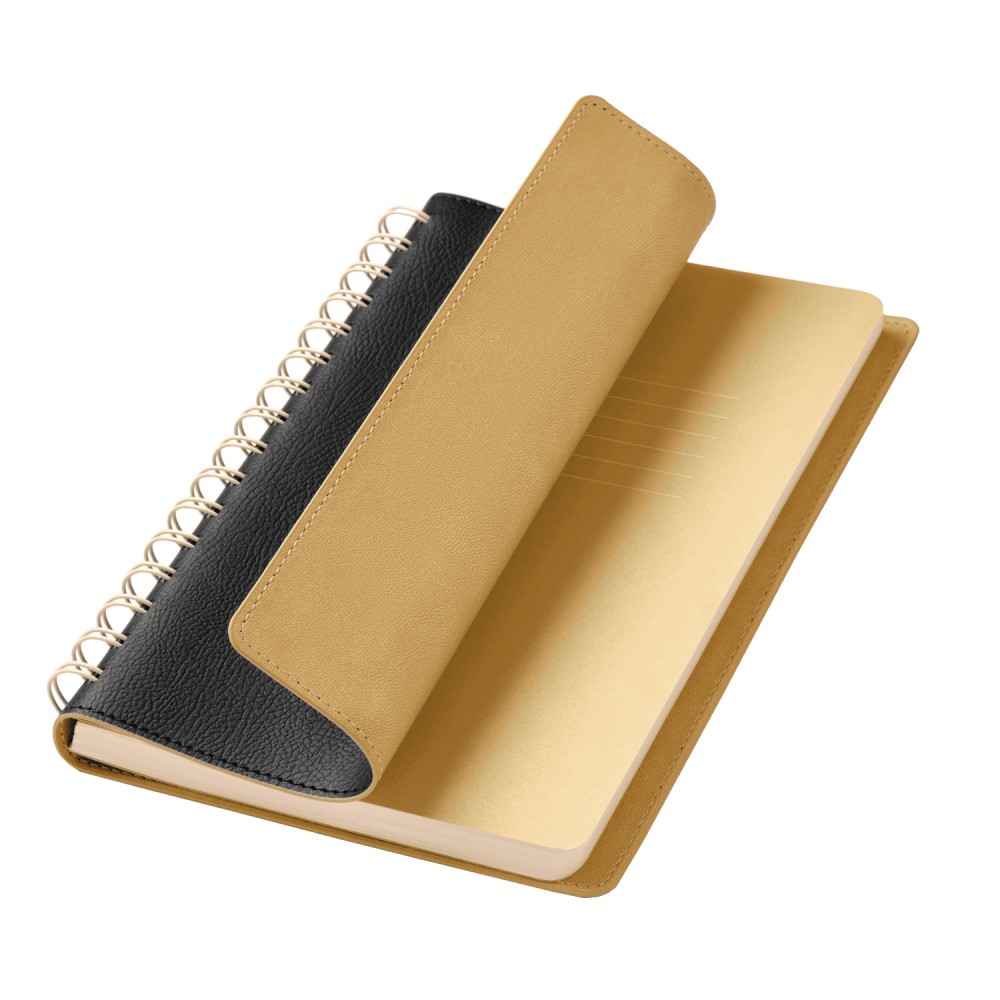 Внутренний блок с кремовыми страницами и срезом гармонично сочетается с нежным оттенком форзаца и нахзаца, повторяющим цвет внутреннего материала обложки. Надежная полускрытая пружина обеспечивает удобство использования и долговечность.