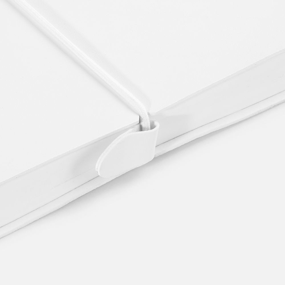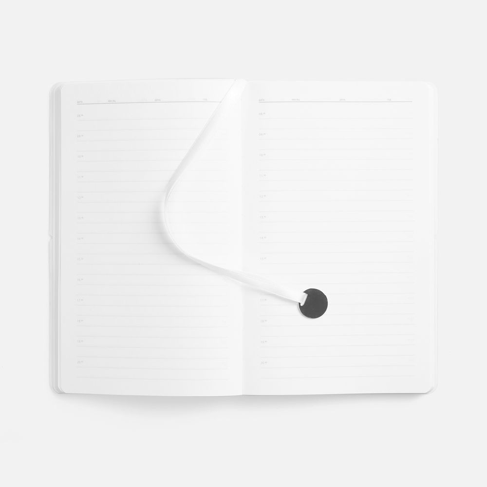Ежедневник с гибкой обложкой, выполнен из материала Waltz, белый BB, дополнен ляссе в цвет обложки с металлическим шильдом.