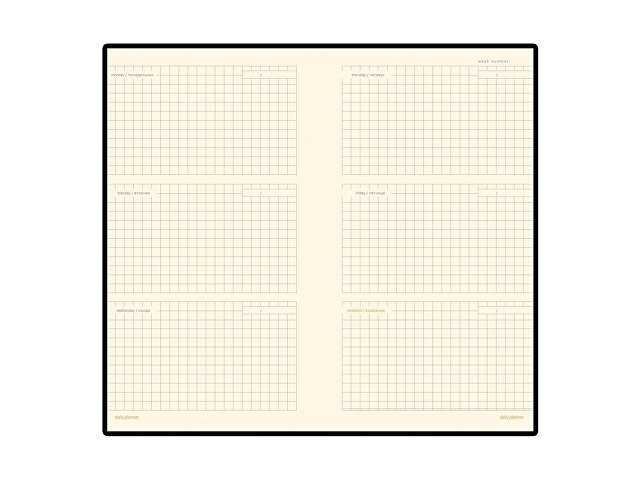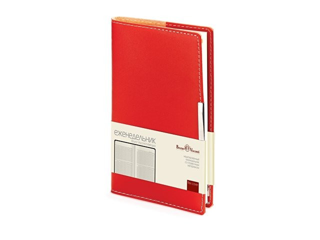Удобный практичный недатированный еженедельник в мягкой обложке из прочного переплетного материала. Контрастная прострочка белыми нитками по периметру привлекает внимание к изящной форме обложки с закругленными уголками. Обложка украшена металлическим шильдиком. Линовка блока - клетка, с указанием дней недели. Карманный формат этого еженедельника позволяет эффективно вести записи на выездных совещаниях, переговорах и встречах. Готов к персонализации.