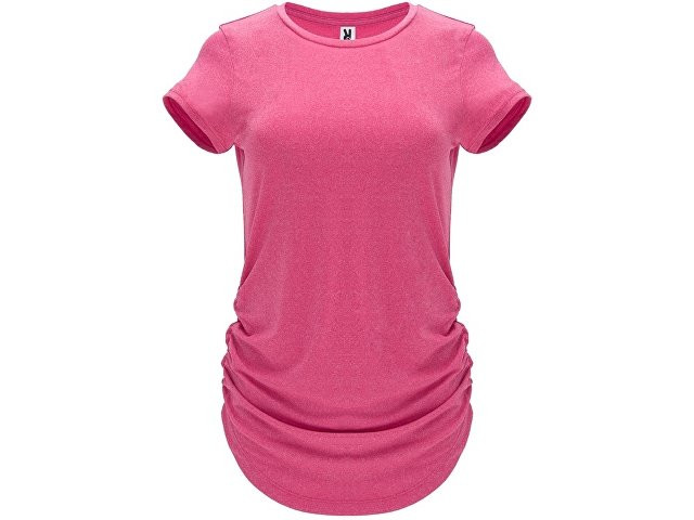 Спортивная футболка с коротким рукавом для женщин. Полотно из полиэстера на ощупь напоминающее хлопок. Круглый вырез горловины обработан бейкой из того же полотна. Эластичная драпировка по боковым швам для лучшей посадки по фигуре. Узкий силуэт.