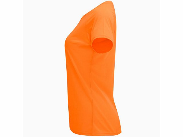 Спортивная футболка с коротким рукавом реглан для женщин. Круглый вырез горловины с отделкой плоским швом. Рукав сложного кроя для обеспечения дополнительного удобства при занятиях спортом. Отделка плоским швом с застилом по пройме и рукавам. Технологичное полотно с функцией DRY CONTROL и защитой от UV излучения