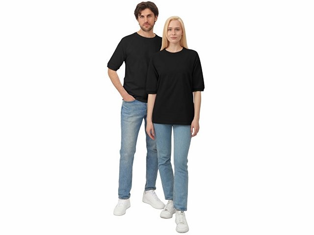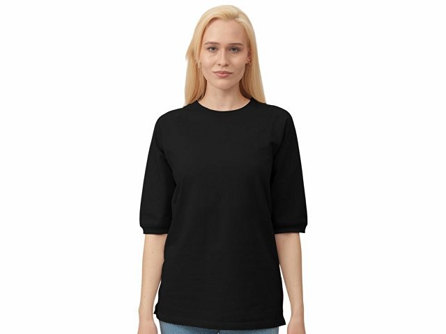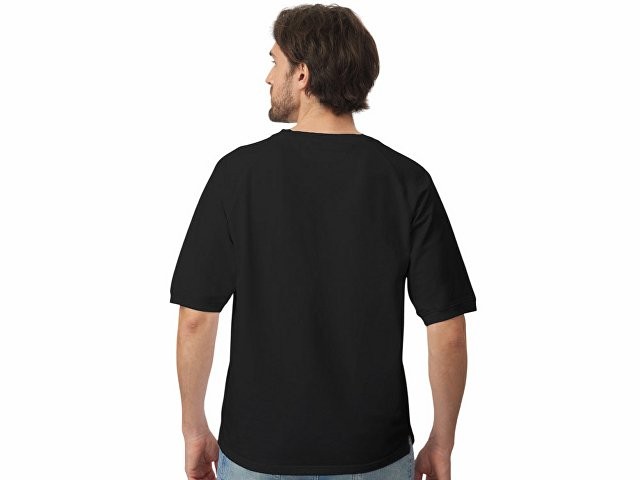 Футболка выполнена из хлопкового френч терри с петельками на изнаночной стороне. Горловина обработана рибом 2х2 и дополнительно усилена тесьмой-елочкой с внутренней стороны спинки и дополнена кокеткой по спинке для нанесения логотипа клиента. Рукав реглан продублирован рибом по низу. Разрезы в боковых швах. Гладкая поверхность полотна позволяет идеально нанести изображение. Футболка комфортного силуэта. - кокетка на внутренней стороне спинки для нанесения - комфортный силуэт - мягкое и качественное полотно френч терри