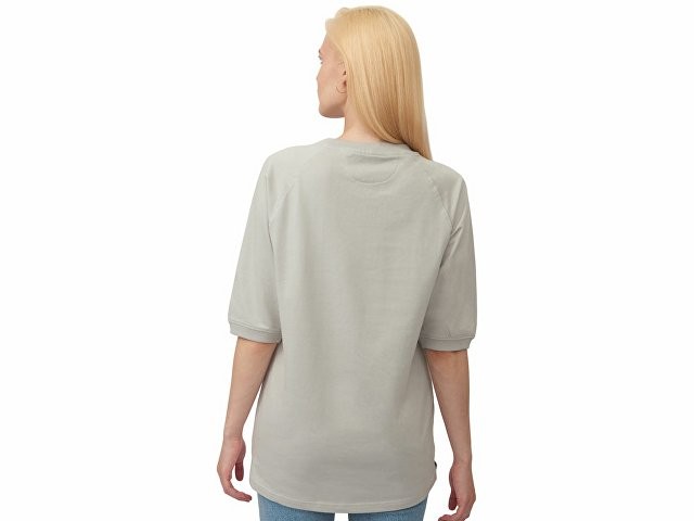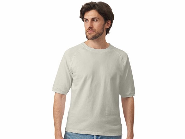 Футболка выполнена из хлопкового френч терри с петельками на изнаночной стороне. Горловина обработана рибом 2х2 и дополнительно усилена тесьмой-елочкой с внутренней стороны спинки и дополнена кокеткой по спинке для нанесения логотипа клиента. Рукав реглан продублирован рибом по низу. Разрезы в боковых швах. Гладкая поверхность полотна позволяет идеально нанести изображение. Футболка комфортного силуэта. - кокетка на внутренней стороне спинки для нанесения - комфортный силуэт - мягкое и качественное полотно френч терри