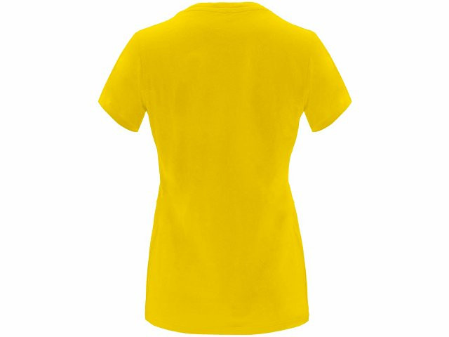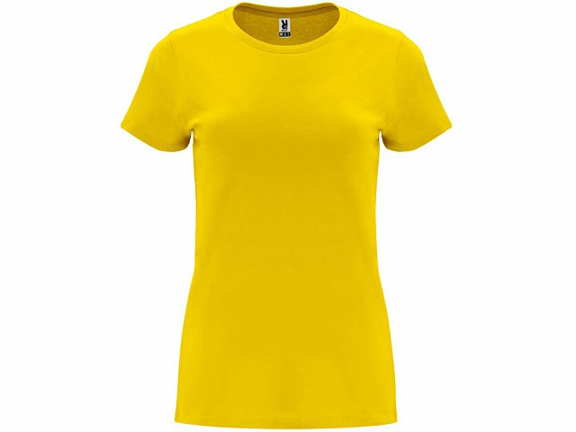 Женская приталенная футболка. Круглый вырез горловины обработан рибом 1х1. Шов горловины укреплен тесьмой.