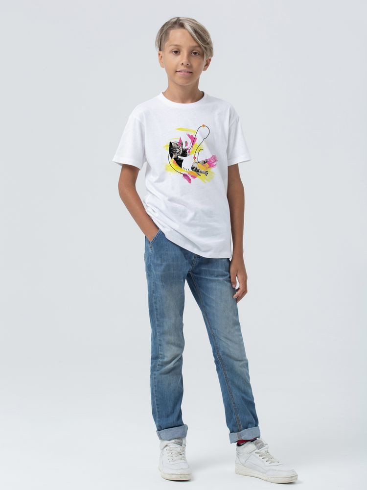 Классическая кроеная футболка с боковыми швами и укрепляющей тесьмой по вороту. Край ворота в резинку с эластаном.Таблица размеров: