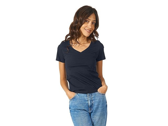 Женская футболка из натурального хлопка с элегантным V-образным вырезом. Материал отлично подходит для нанесения рекламной информации. Натуральная ткань не вызывает раздражения кожи.