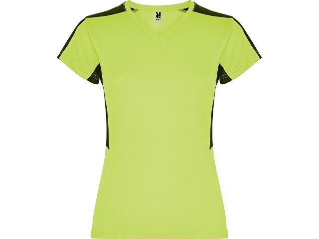 Расчет нанесенияЖенская футболка с коротким рукавом. V-образная горловина. Комбинация из 2 полотен контрастного цвета: структурное полотно на полочке и дышащая 3D сетка на плечах и боках.