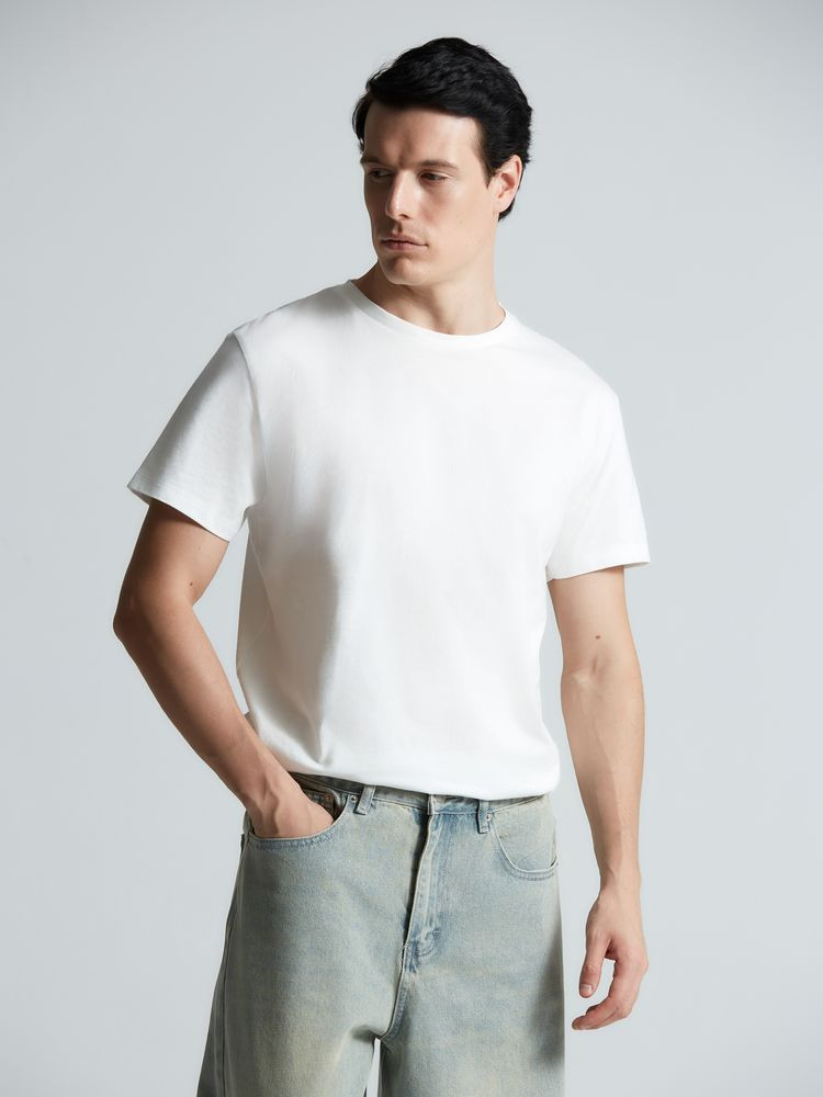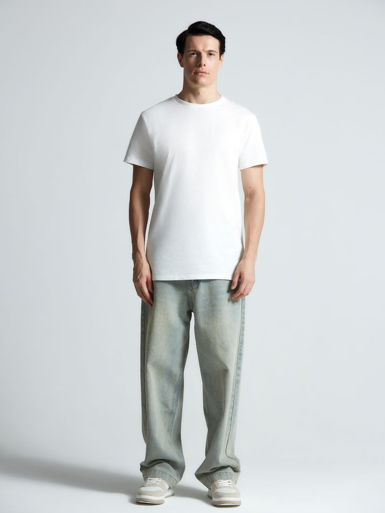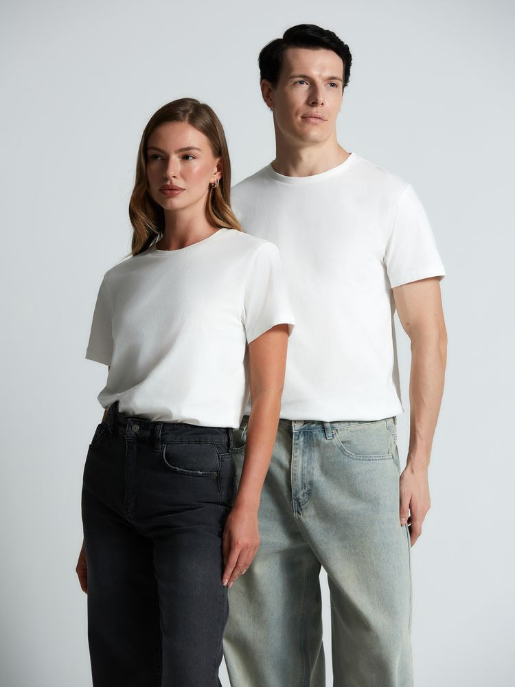 Классическая кроеная футболка унисекс из гребенного хлопка. Благодаря тонким и длинным волокнам хлопка ткань футболки отличается гладкостью, ровностью и прочностью, отлично сохраняет форму, не деформируются и не выцветает при стирке. Горловина выполнена резинкой 1x1. Слегка приталенный силуэт.