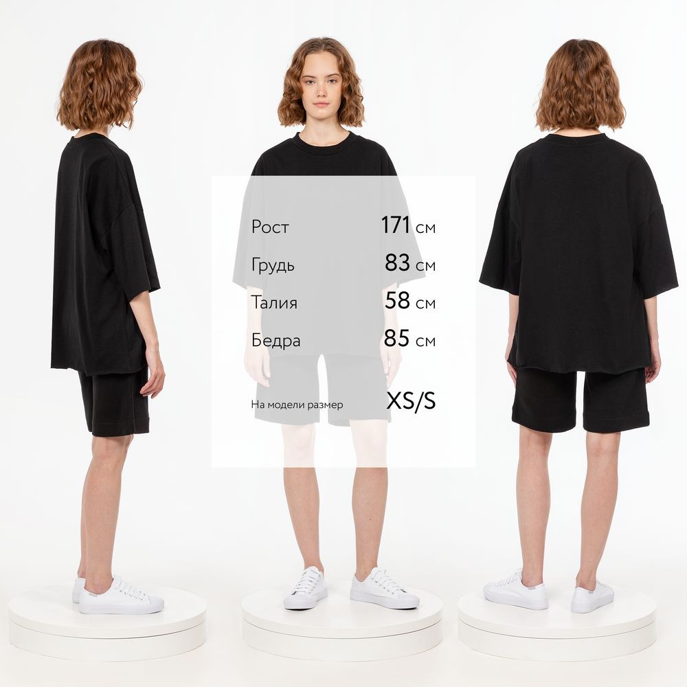 Футболка унисекс свободного кроя со спущенным плечом.