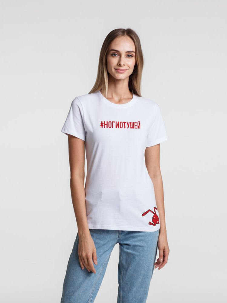 Перед вами поучительная история персонажа, который был несколько недальновиден и теперь у него буквально ноги от ушей! Эта приятно прилегающая к телу футболка предупреждает: в любой непонятной ситуации… всегда старайтесь разобраться в ситуации!Кроеная женская футболка с круглым воротом-резинкой 1x1.