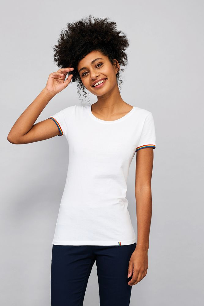 Контрастные цветные полоски по низу рукавов.