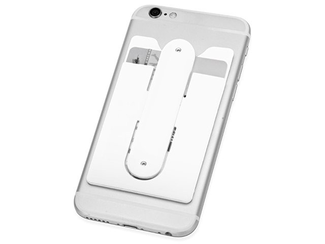 Чехол для визиток и кредитных карт с функцией подставки. За счет клейкой основы прикрепляется к обратной стороне телефона или любой другой плоской поверхности.