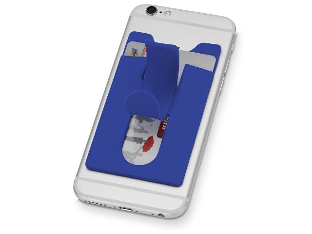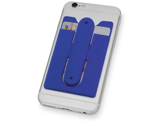 Чехол для визиток и кредитных карт с функцией подставки. За счет клейкой основы прикрепляется к обратной стороне телефона или любой другой плоской поверхности.