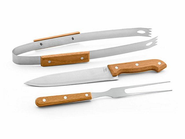 Набор из 3 предметов для барбекю из дерева и нержавеющей стали. Набор из 3 предметов в жестком футляре 210D.