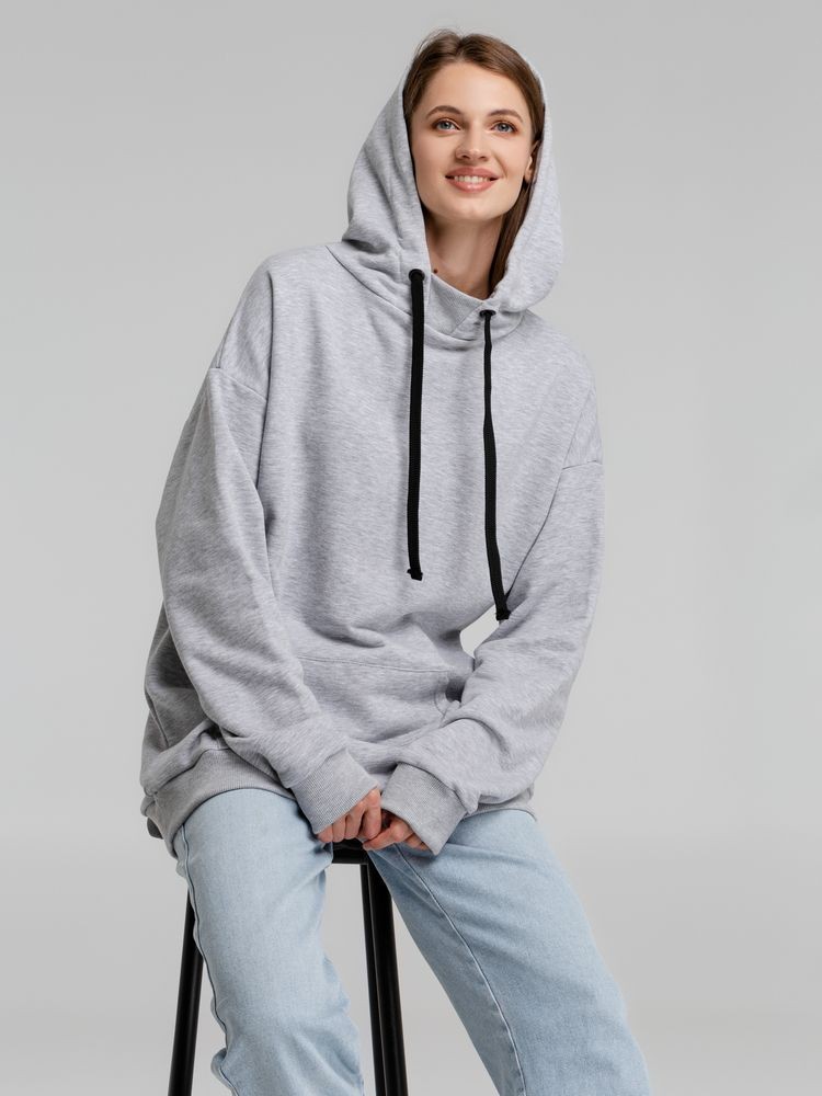 Худи унисекс со спущенным плечом и карманом-кенгуру.