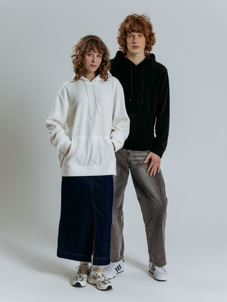 Худи унисекс расслабленного силуэта с карманом-кенгуру.