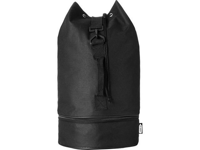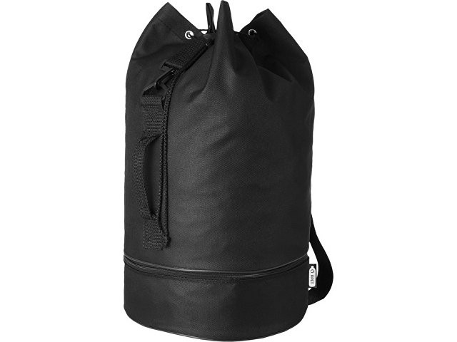 Водонепроницаемый спортивный вещмешок из переработанного РЕТ-пластика с вместительным 20 основным отделением объемом 20 литров, застежкой на шнурке, боковой ручкой и регулируемым плечевым ремнем. Также имеет отдельное нижнее отделение на молнии для небольших предметов.
