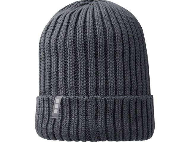 Экологически безопасный рекламный головной убор. Однослойная шапка с двойным отворотом связана рибом 2х2 7 класса из 100% органического хлопка. Фирменная этикетка в виде петли.
