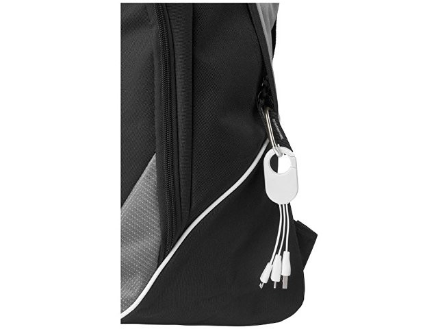 Кабель для зарядки «3-в-1». Кабель для зарядки Troop «3-в-1» с коннектором USB Type C и двойным совместимым коннектором «2-в-1» для устройств Apple® iOS и Android. Кабель оснащен карабином для удобного крепления к сумке. АБС-пластик.