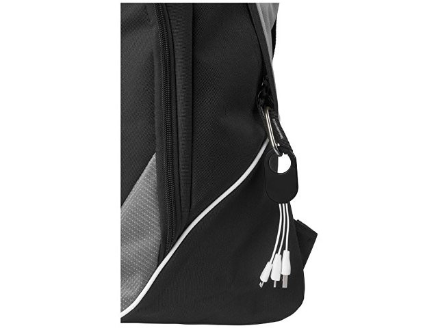 Кабель для зарядки «3-в-1». Кабель для зарядки Troop «3-в-1» с коннектором USB Type C и двойным совместимым коннектором «2-в-1» для устройств Apple® iOS и Android. Кабель оснащен карабином для удобного крепления к сумке. АБС-пластик.