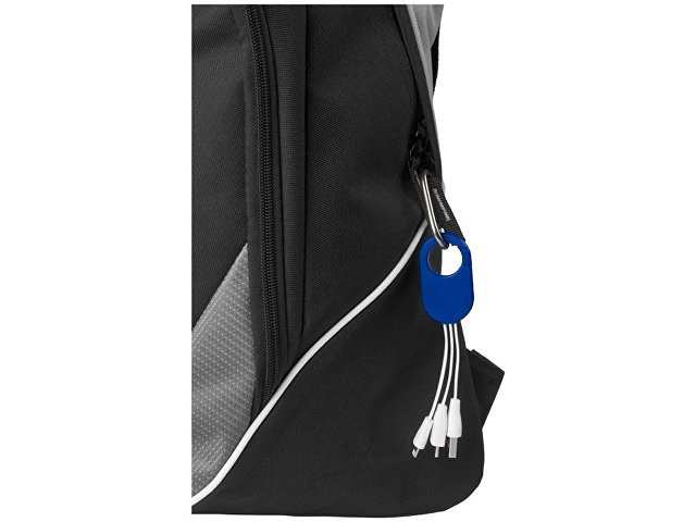 Кабель для зарядки «3-в-1». Кабель для зарядки Troop «3-в-1» с коннектором USB Type C и двойным совместимым коннектором «2-в-1» для устройств Apple® iOS и Android. Кабель оснащен карабином для удобного крепления к сумке. АБС-пластик.