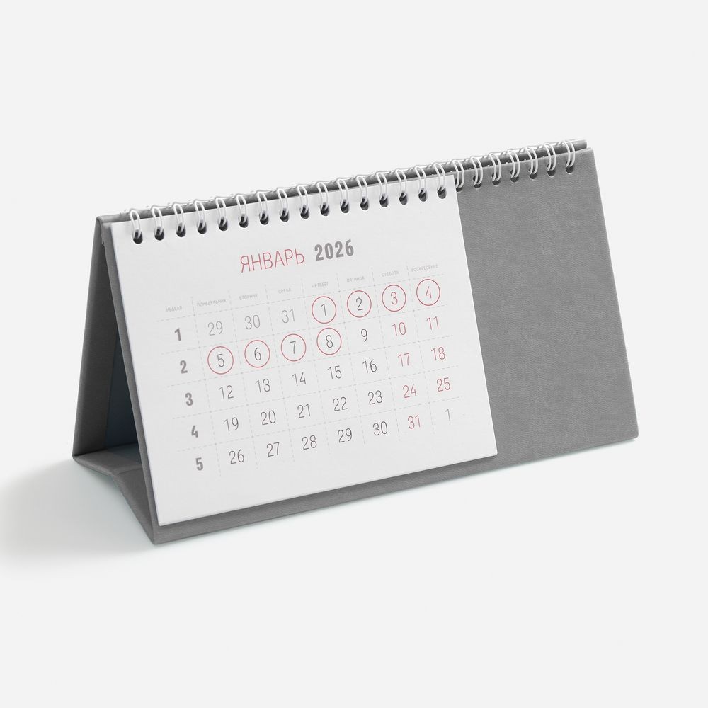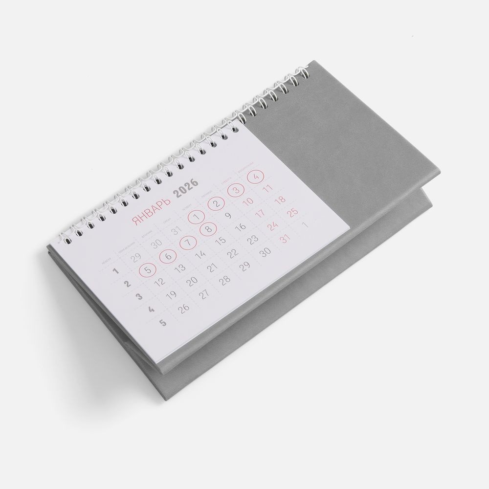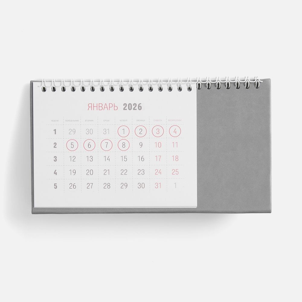Настольный перекидной календарь-домик выполнен из материала Latte, серый СС.