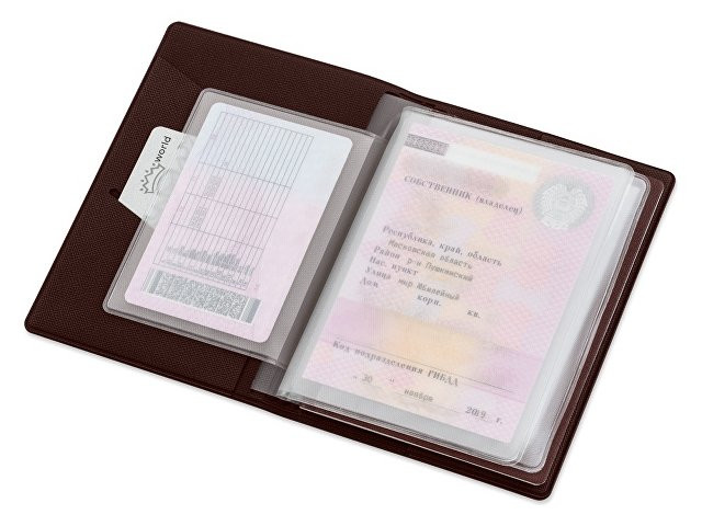 Обложка (портмоне) для документов - это необходимая вещь для любого автовладельца. Качественная обложка сохранит документы в целости, защищая их от изломов, пыли и грязи. Данная обложка из искусственной кожи станет стильным и функциональным аксессуаром. Внутренние вкладыши выполнены из пленки пвх и позволяют разместить: паспорт, свидетельство о регистрации тс, полис осаго, водительское удостоверение, также имеется кармашек для пластиковой карты.