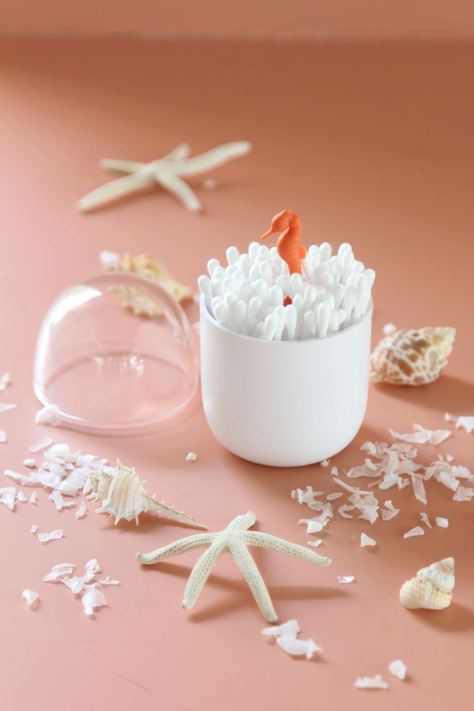 Контейнер для ватных палочек "Seahorse" закрывается плотной крышкой, поэтому содержимое защищено от выпадения и нежелательных внешних воздействий. Аксессуар можно хранить в ванной на полочке или туалетном столике. При необходимости контейнер легко заполняется, палочки хранятся в таком положении, чтобы их было удобно брать. Корпус подставки герметичен и устойчив. Никто не мог подумать, что ватная палочка влияет на безопасность морских обитателей, поэтому, пожалуйста, будьте ответственны при использовании всех пластиковых одноразовых изделий, используйте только по мере необходимости и перерабатывайте столько, сколько сможете. Размер: 7 х 11,4 х 7 см