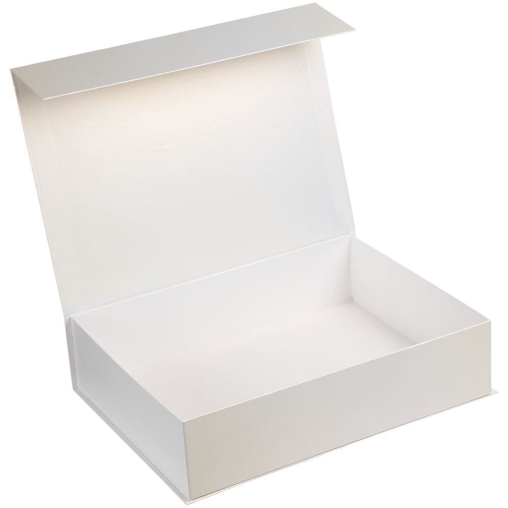 Коробка выполнена из переплетного картона, кашированного гладкой дизайнерской бумагой Majestic цвета «Золотой свет», с крышкой на магнитах.