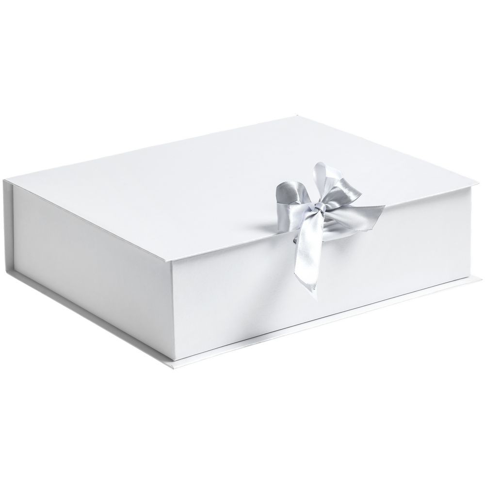 Коробка выполнена из переплетного картона, кашированного дизайнерской бумагой Majestic, с крышкой на ленте.