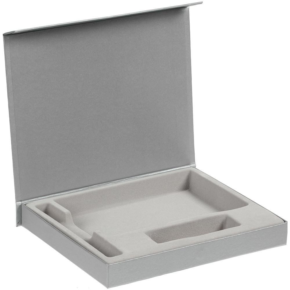 Коробка Doc под блокнот, аккумулятор и ручку, серебристая