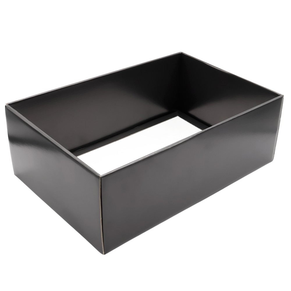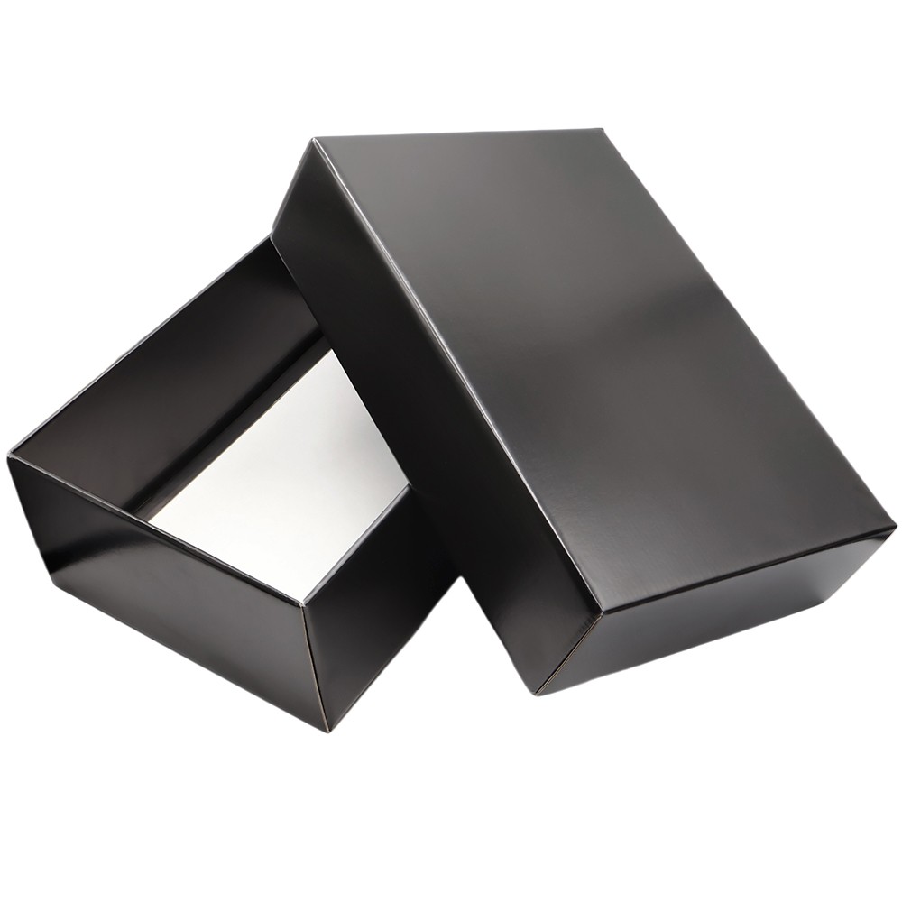 Стильная и функциональная коробка Resolve ипа "Крышка+дно" в классическом черном цвете с глянцевой поверхностью. Внутренние размеры коробки: 355*234*125 мм. Основа коробки - гофрокартон Т23Е. Поставляется в разобранном виде!
