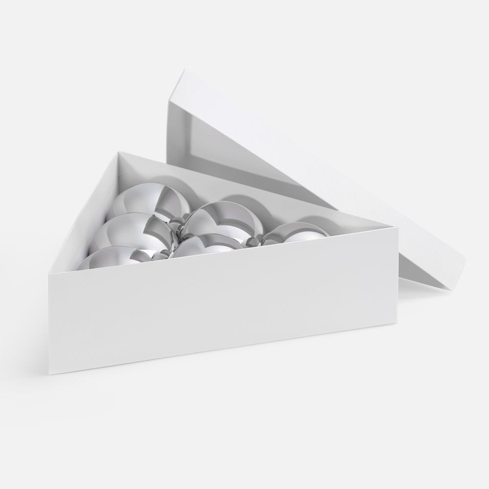 Изготовлена из переплетного картона 1,5 мм, кашированного дизайнерской бумагой TPG Metallic Soft White.Выдерживает вес до 2,5 кг.