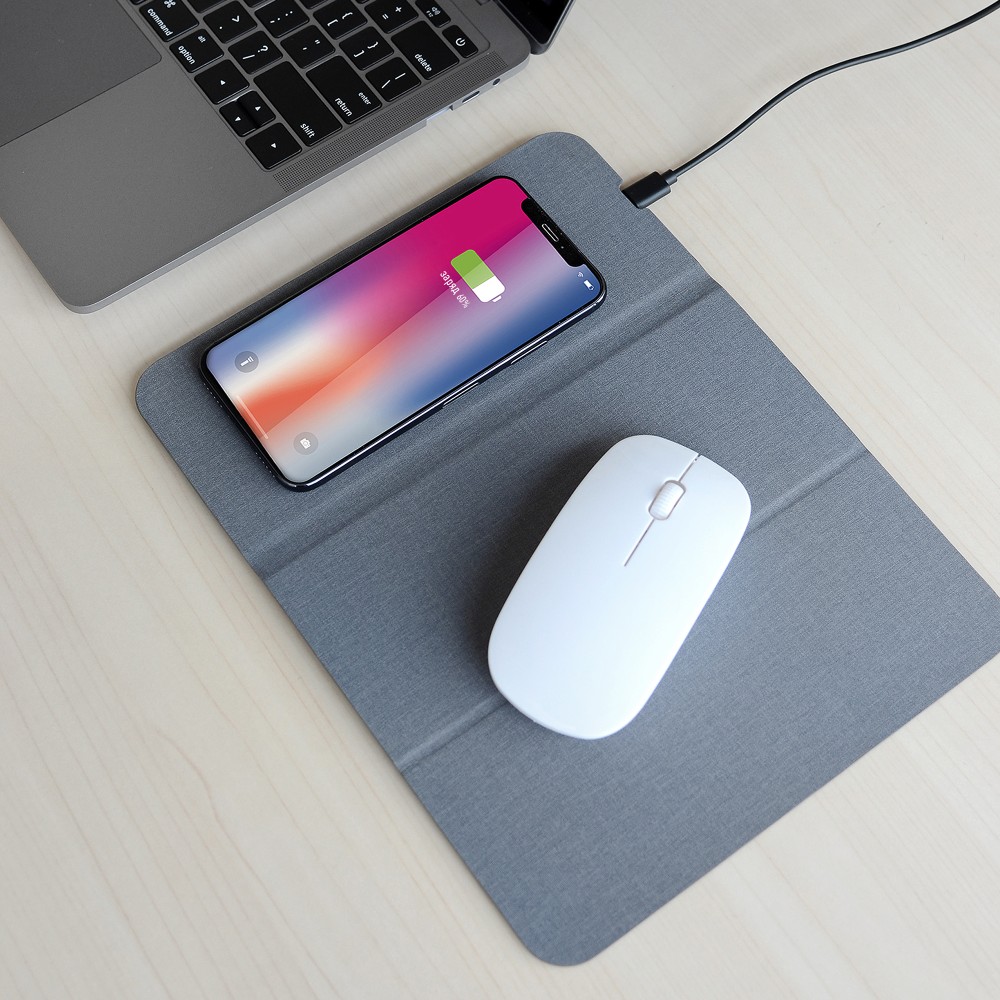 Современный настольный аксессуар - коврик для мыши с функцией беспроводной зарядки (5W).