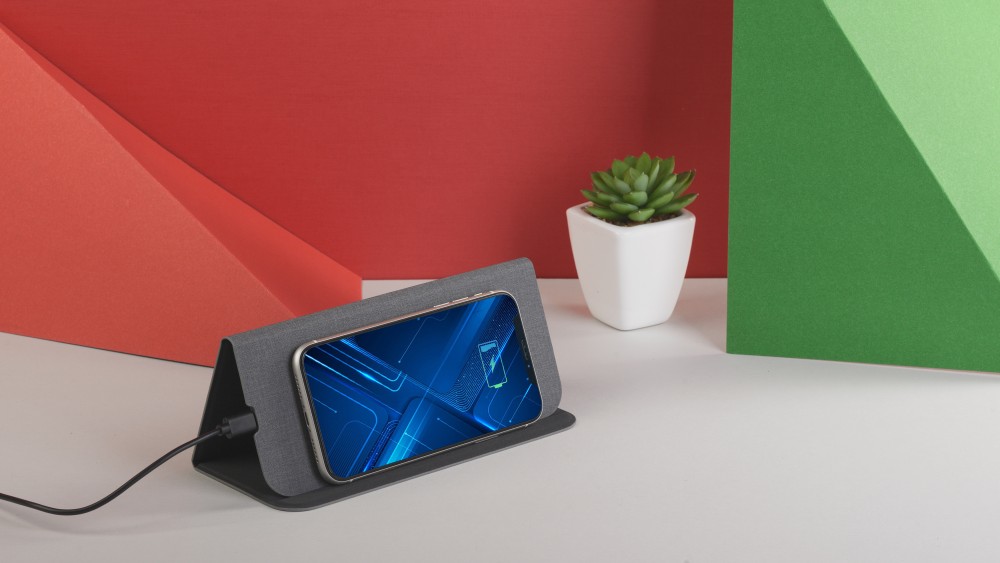 Коврик легко трансформируется в настольную подставку для более удобного просмотра фото/видео на экране смартфона (функция беспроводной зарядки сохраняется).