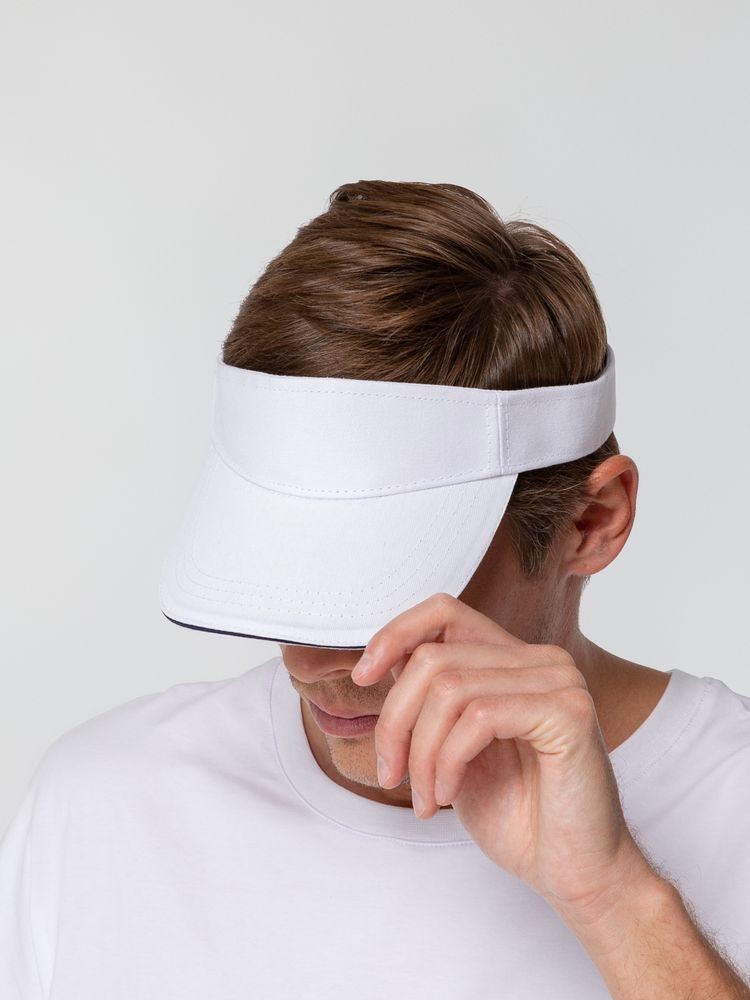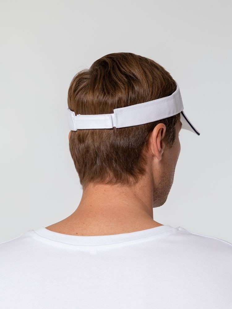 Плотный козырек-сэндвич с контрастной вставкой. Регулируемая застежка на липучке.