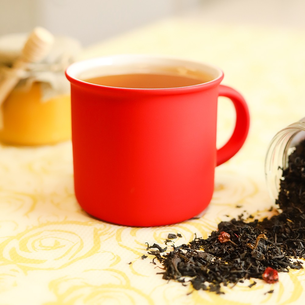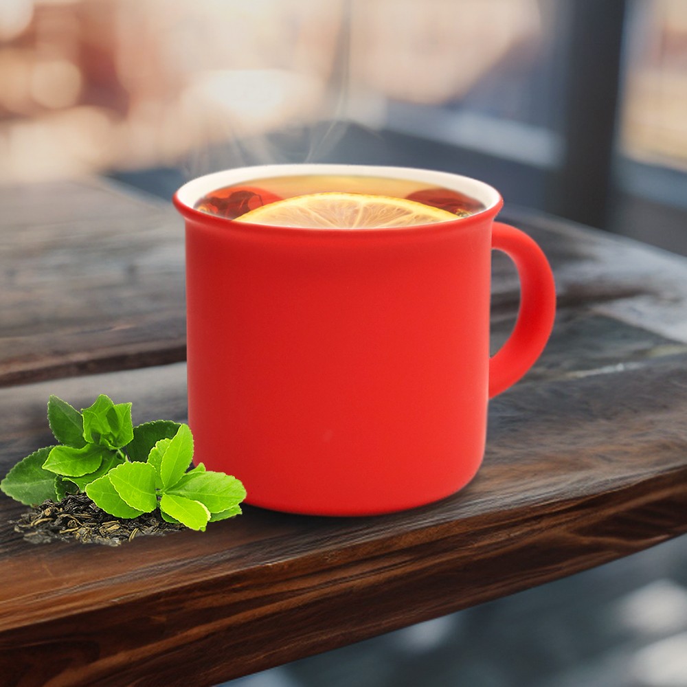 Вместитильная кружка объемом 380мл с поверхностью софт тач диаметр 9.4см, высота 8.6 см