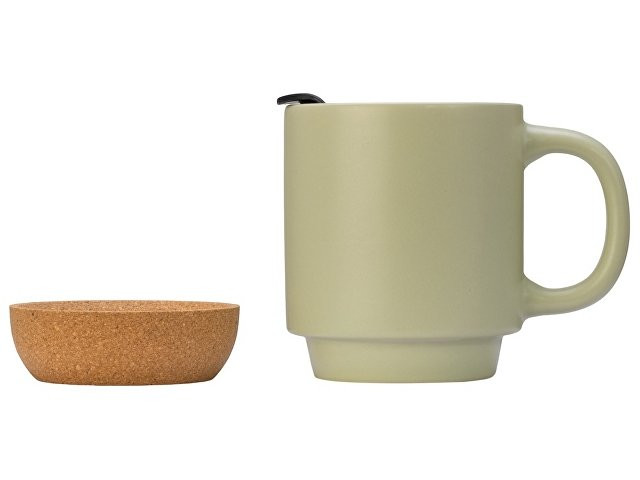 Кружка Denpasar с пробковым дном и крышкой, цветная с двух сторон, оливковый