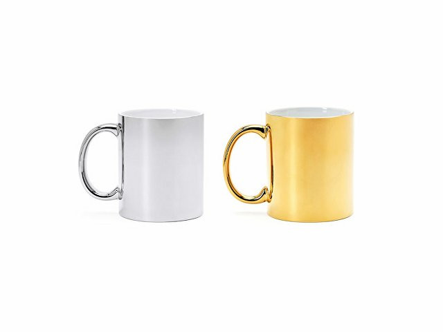 Керамическая кружка объемом 350 мл с глянцевым покрытием. Специально для лазерной гравировки. Доступна в серебряном и золотом цвете.