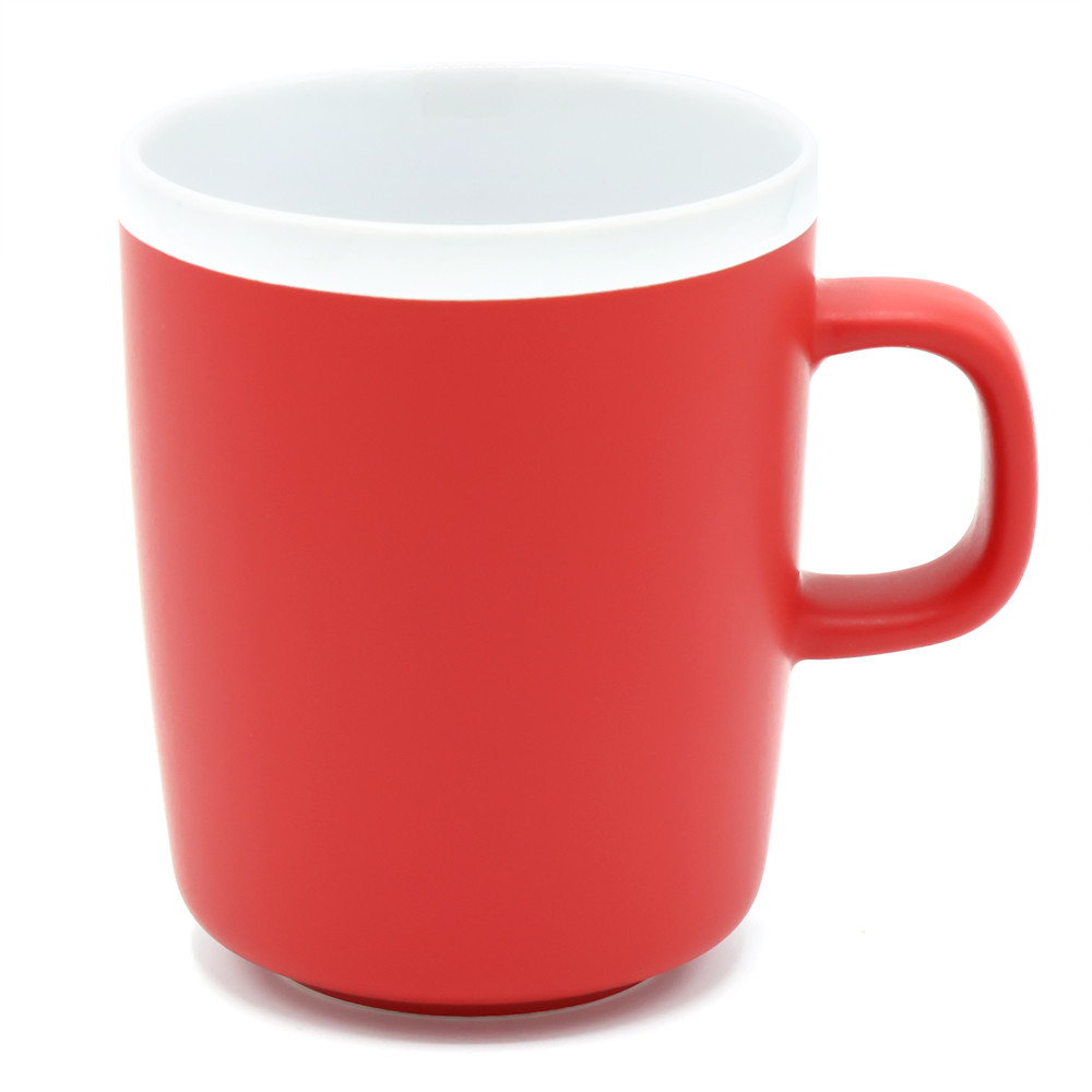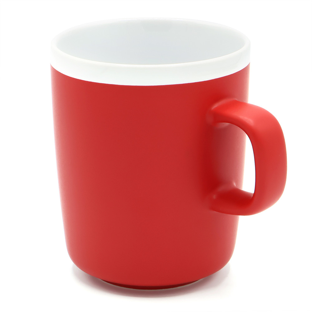 Матовая поверхность с белым глянцевым ободком по краю создаёт контраст и привлекает внимание. Благодаря лаконичной форме и эргономичной ручке кружку удобно держать в руке. Кружка доступна в различных цветах. Подходит для горячих и холодных напитков. Цвет по PANTONE® (максимально приближен): 186C