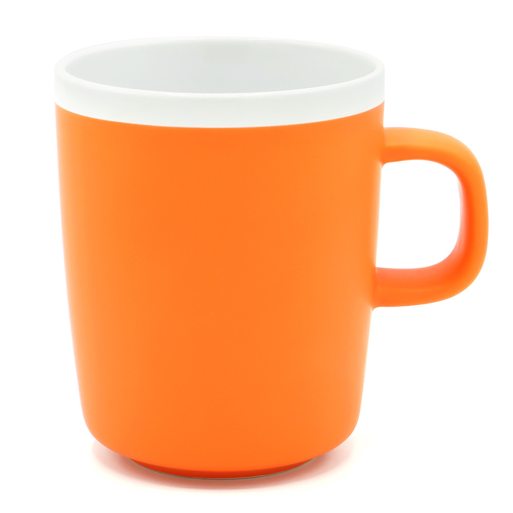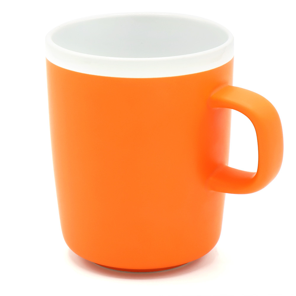 Матовая поверхность с белым глянцевым ободком по краю создаёт контраст и привлекает внимание. Благодаря лаконичной форме и эргономичной ручке кружку удобно держать в руке. Кружка доступна в различных цветах. Подходит для горячих и холодных напитков. Цвет по PANTONE® (максимально приближен):165C